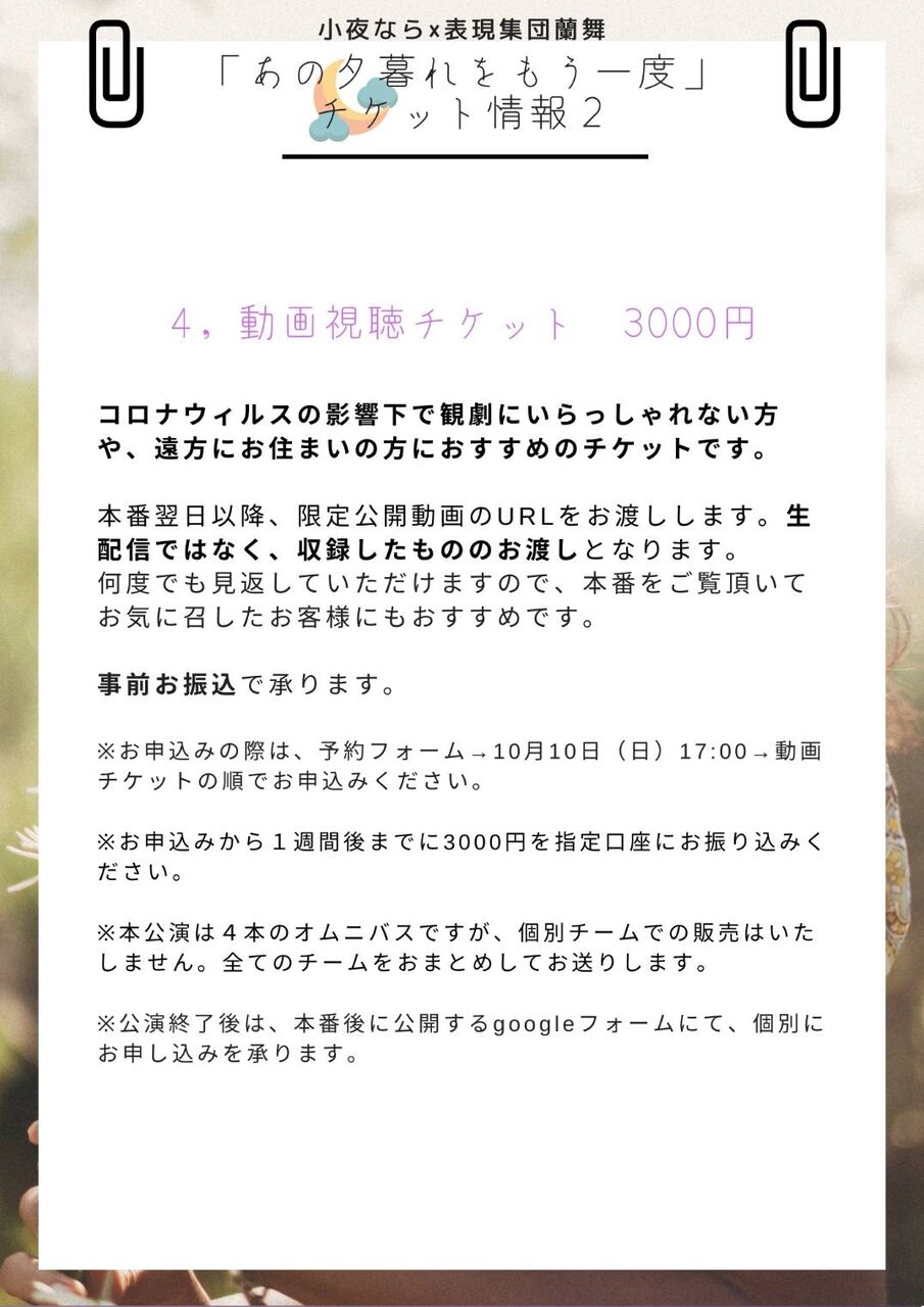 またこのご時世、劇場に脚を運ぶのが難しい方向けの【動画視聴チケット】なるものもございますので、宜しければそちらも合わせて御検討下さい。