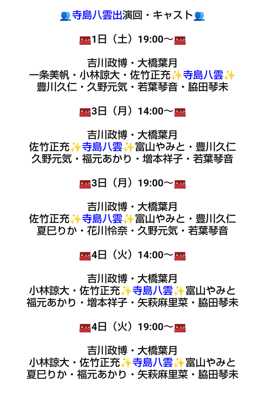 📚️寺島八雲出演回・キャスト📚️