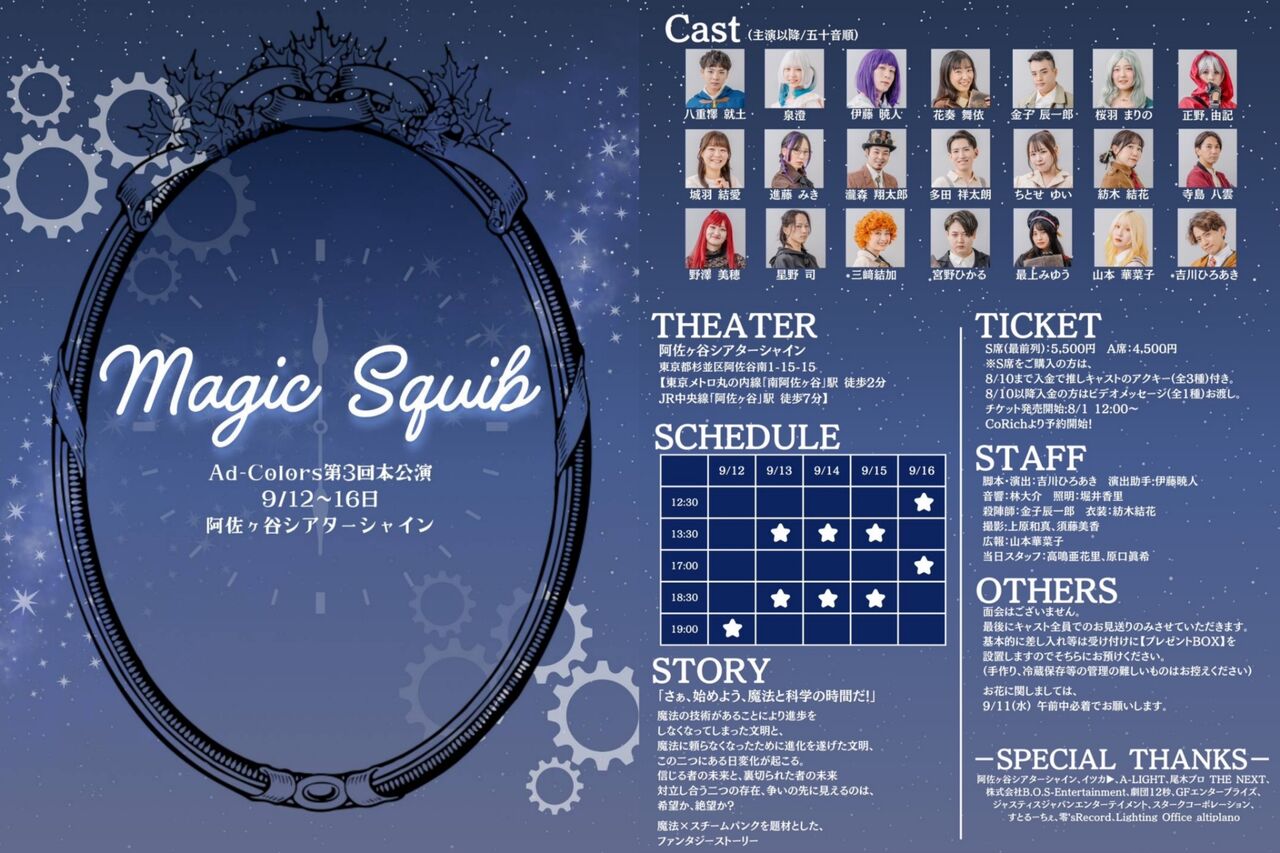 一昨日の10月27日(日)23時59分を持ちまして、Ad-Colors第3回本公演『Magic Squib』のアーカイブ配信期間が終了しました。