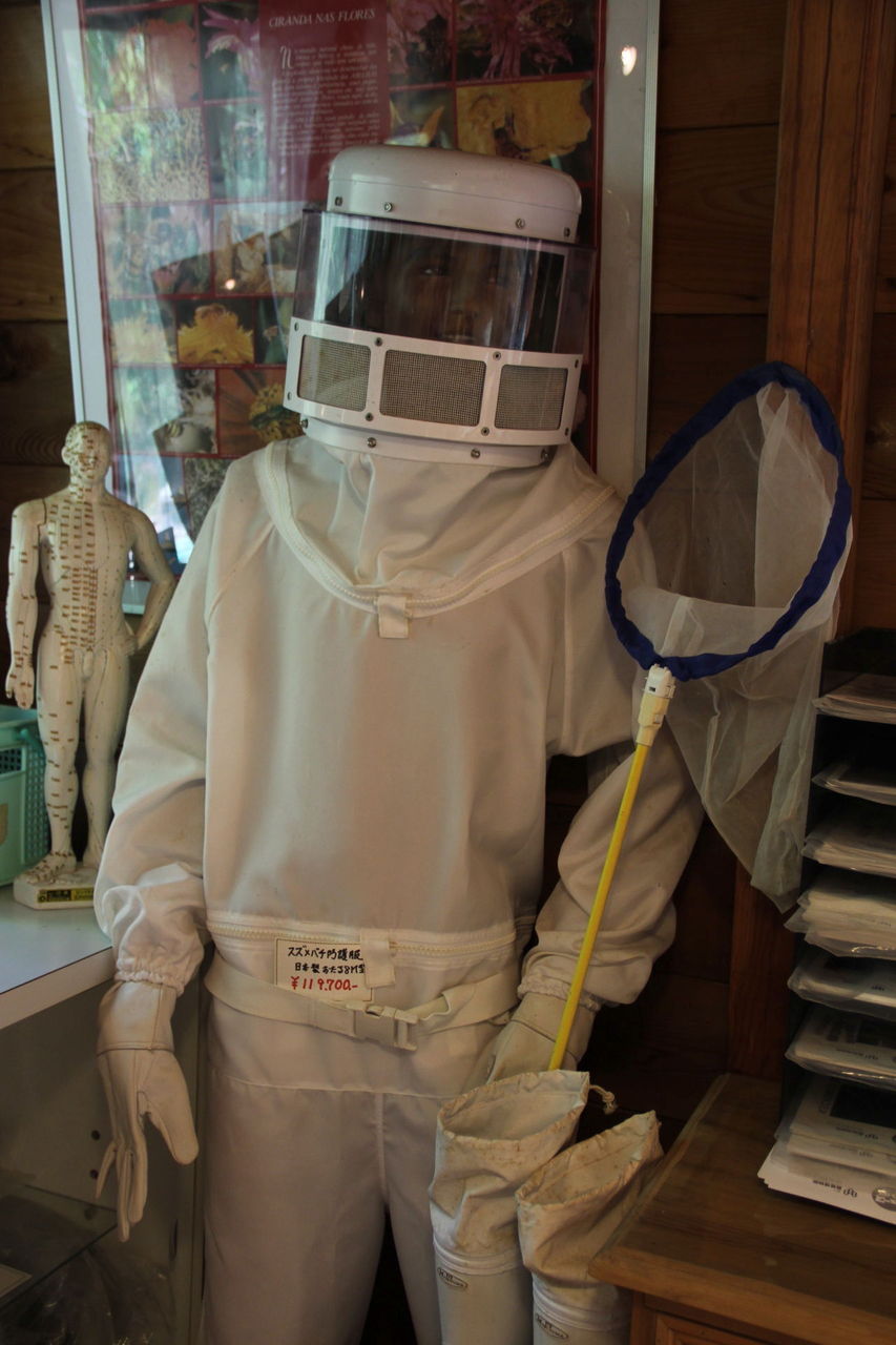 蜂用の防護服に身を包んだ美女(マネキン)と