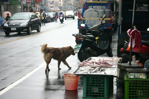 台湾の田舎街では、放し飼いのワンコものんびりウロウロしていて微笑ましい。