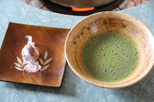 冬季の参拝客には、管理人のおばちゃんから抹茶とお茶菓子が振る舞われる。