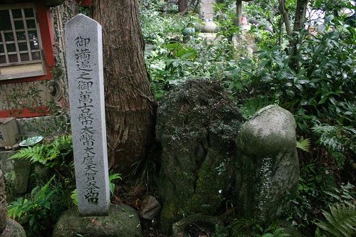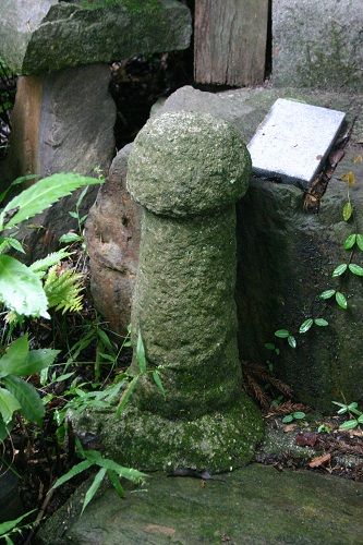 山麓園にひっそりとたたずむお社の膝元に男根発見。