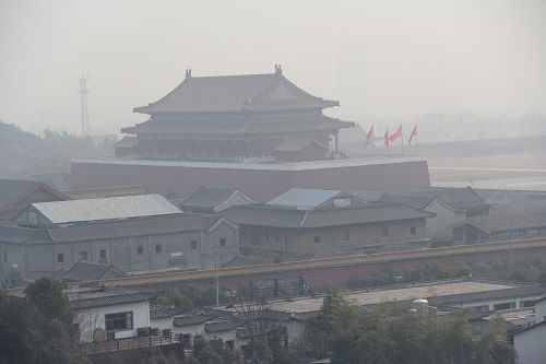 『明清宮苑』の入口のゲートはPM2・5?で霞んでいる・・・