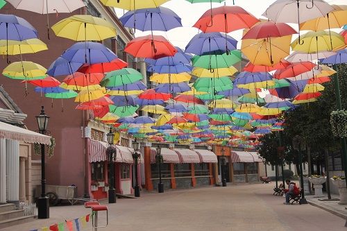 何かの前衛芸術なのか?なぜカラフルな傘をぶら下げるのか、不明だった。