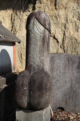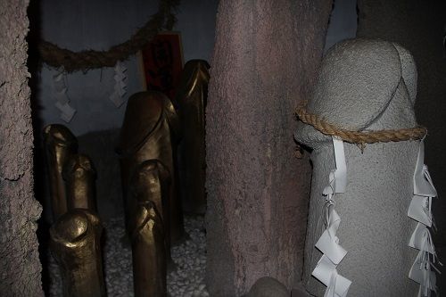 こちらの境内では、黒光りする男根があった。