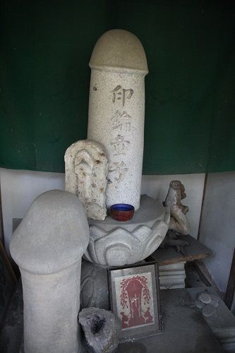 境内や本堂内にも男根多数あり。