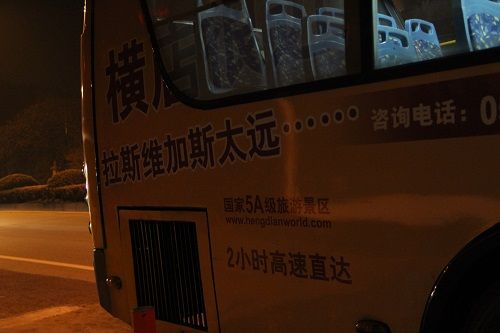 杭州市内の市バスの広告には横店影視店まで高速で2時間とあるが、