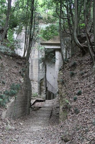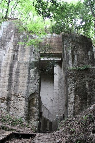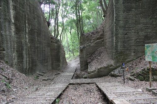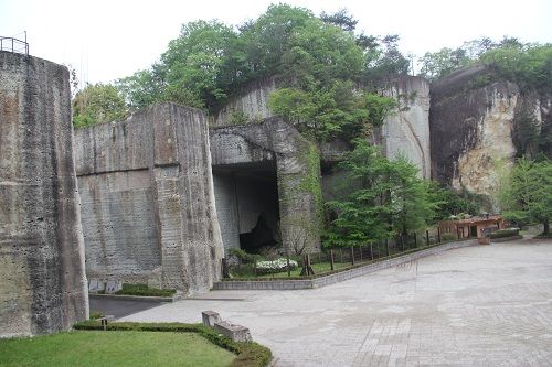 入口だよ。ここから徒歩5分くらいの場所に藪塚石切場跡がある。