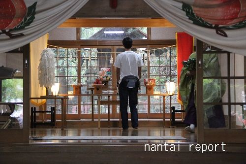 日比野塗装店の伊佐治社長らも社殿でお祈りをするのだが、