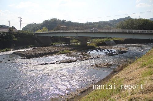 土走橋。台風の影響か、可児川の流れが速いと感じられた。