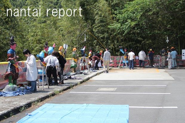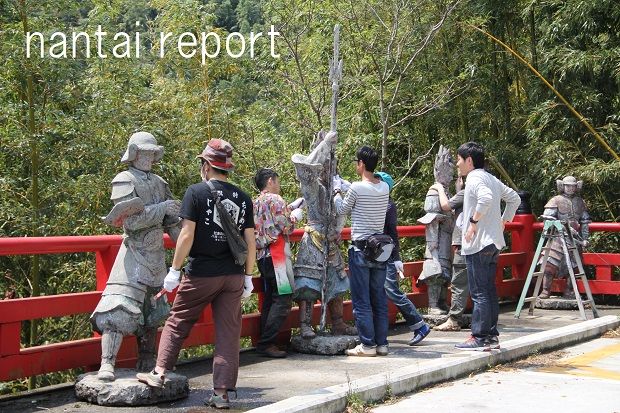 熱海城の駐車場にある浅野祥雲作品の修復活動が行われた。