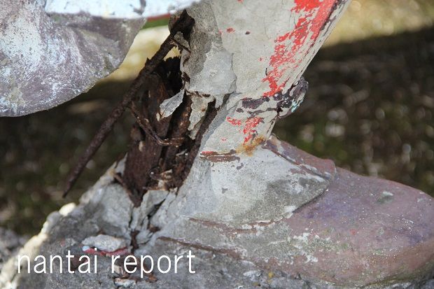 修復前の迷企羅大将(めきらたいしょう)の足。