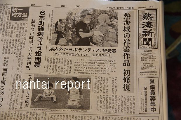 2015年4月26日、修復活動が熱海新聞の1面トップ記事になっていた。