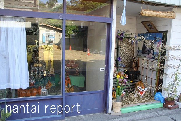 多度津港近くの商店街の空きテナントには五月人形なんかが飾られていた。