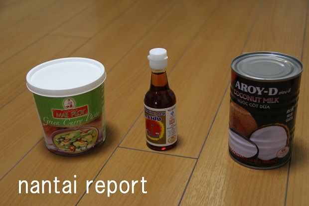 グリーンカレーペーストとニョクマム(目分量なので、味を見ながら調節)を
