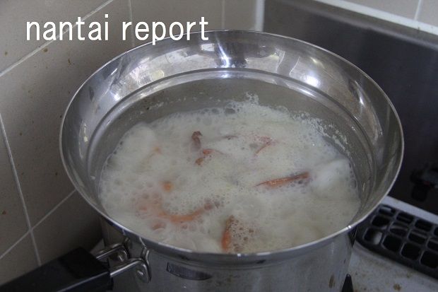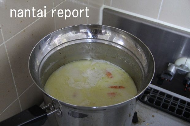 鍋の中身は最初は白い。