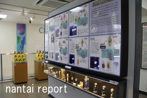 ホルマリン漬けの寄生虫実物標本があったり、