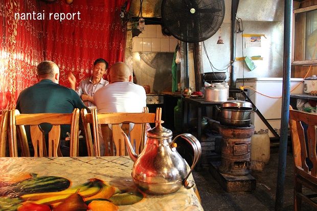 お客のウイグル族のおじさん達が飲んでいるのは、