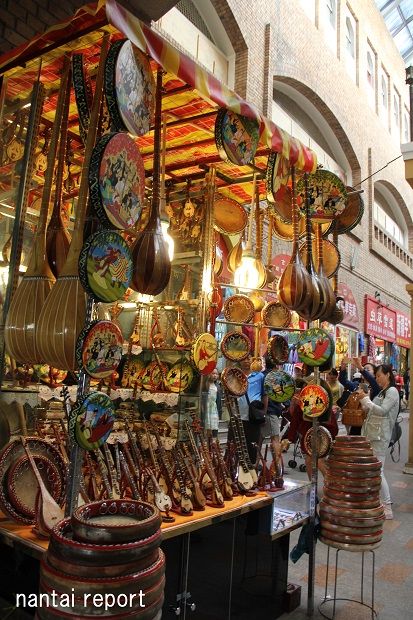ウイグル族の工芸品の楽器や民族衣装、