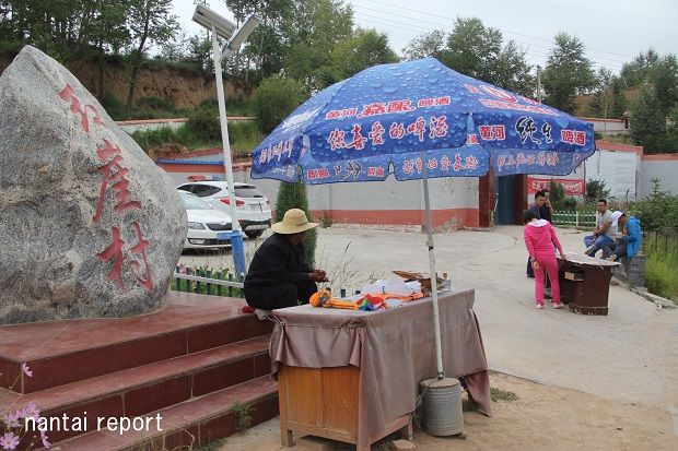 紅崖村の入口前で観光客目当ての酒とか並べて商売をしているようだ。