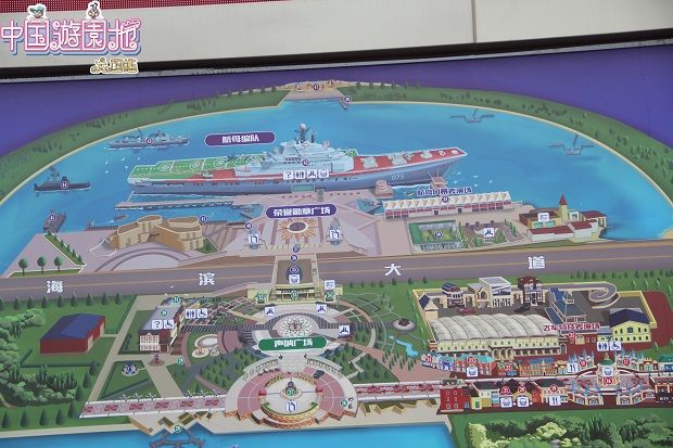 この空母型テーマパークは天津市からも空港からも40km以上あり、