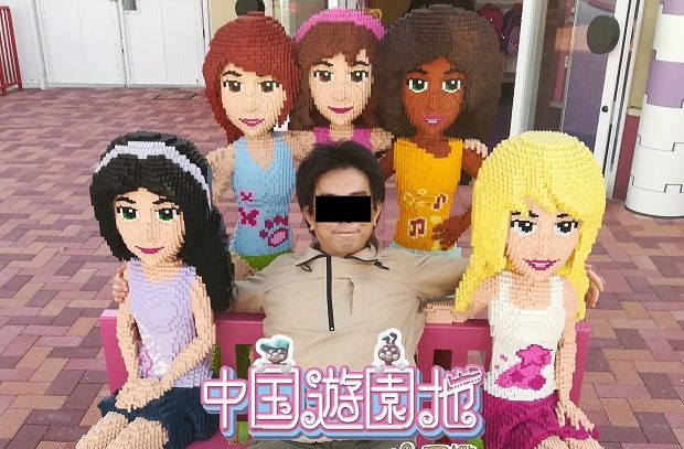 園内で女の子たち(レゴブロック)と肩を組んで撮影。