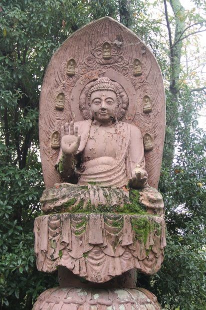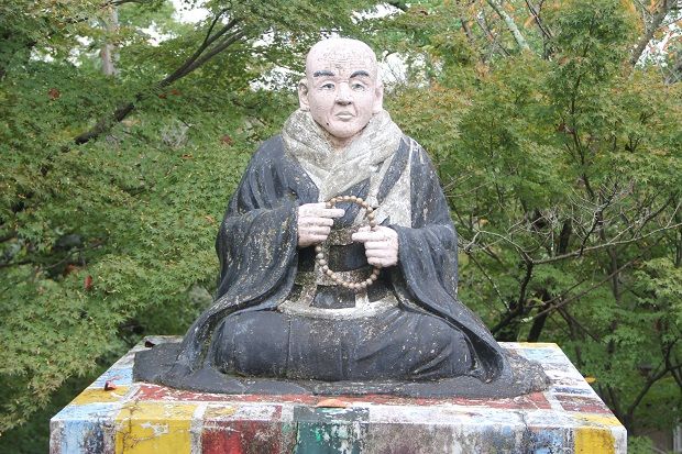 寺務所周りの親鸞聖人座像、薬師如来像、聖徳太子像、五劫思惟仏など