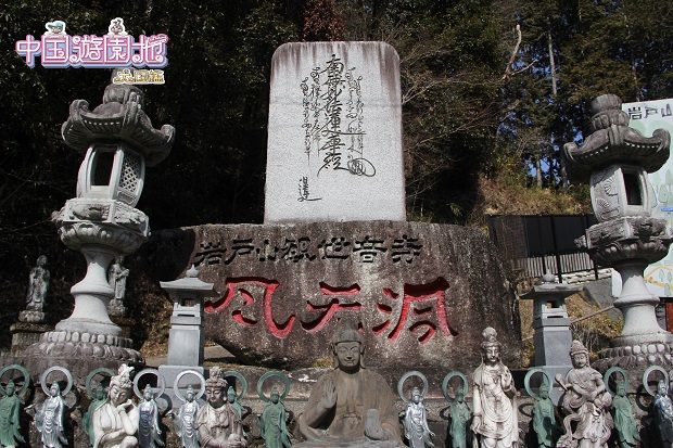 大秘殿の屋外に設置されていた一部破損している磐鹿六雁命は風天洞にある。