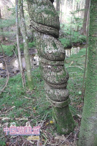 木にツタが蛇のように巻き付いて締め上げているようだ。