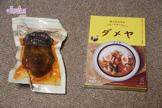 トークの前に栗田さんのファンの方から四川搾菜とダメヤのレトルトカレーの差し入れ。