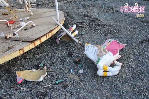 残念ながら、解体されることを待つばかりのメリーゴーラウンド。