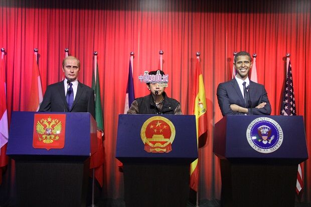 中国の蝋人形館では中国のリーダー気分を味わえるギミックがある模様。