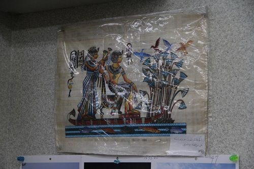店内に貼ってあるパピルス紙は、お客さんのエジプト土産らしい。
