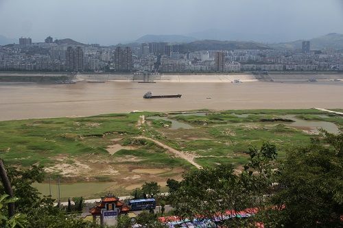 長江の向こう岸が豊都の街並みで、高層住宅ばかりである。