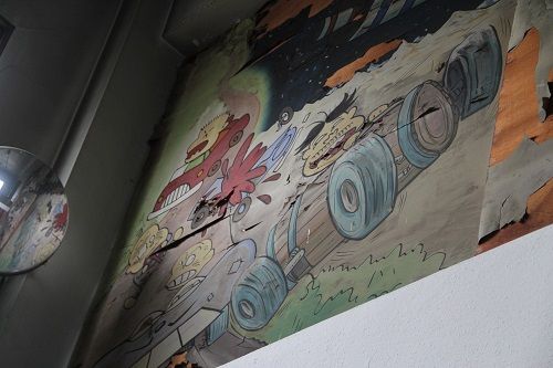 赤塚不二夫風のキャラが壁に描かれていて、かなりボロボロになっとった。