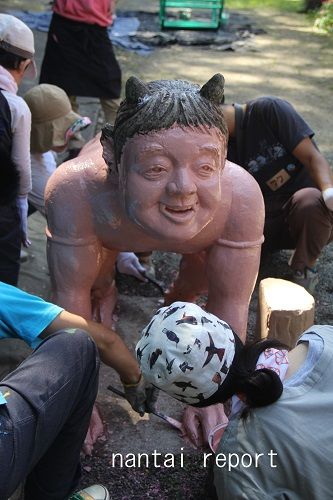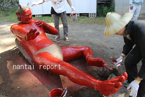実際、青鬼の胸には毛を示す溝が何本も彫られていた。