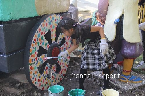 宝車の車輪は女の子の手によって、遊び心も満載のドット柄に変身。