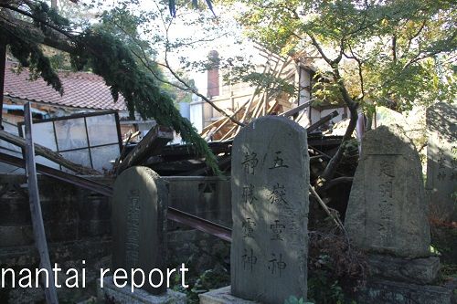 社殿の屋根、崩落。