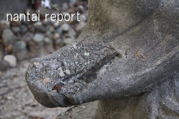 霊神像の衣装の裾も経年劣化でボロくなっている。