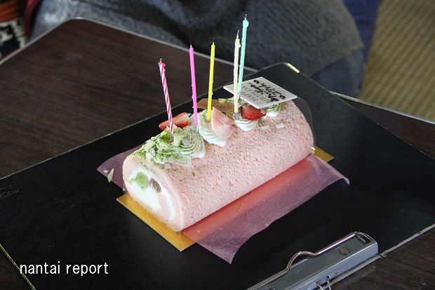 Mさんが持参したロールケーキ。