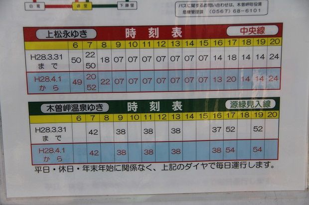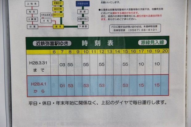 木曽岬温泉から近鉄弥富駅ゆきの時刻表。