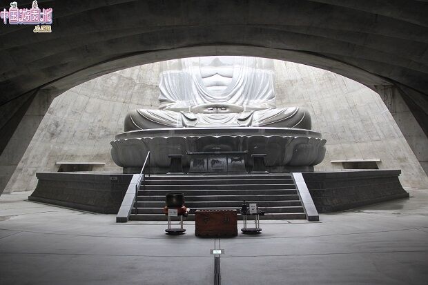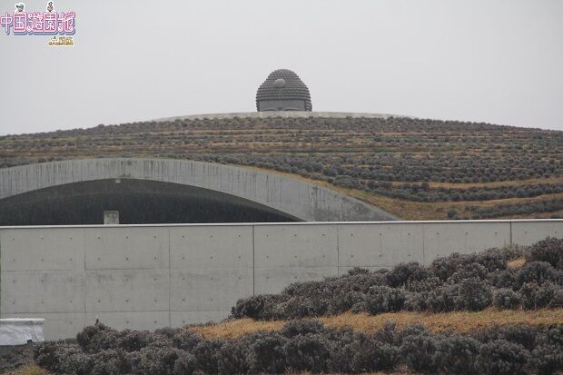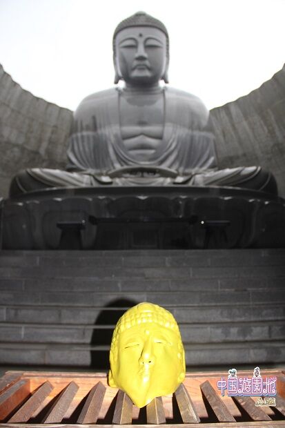 園内の丘?から大仏さまの頭部が突き出している。