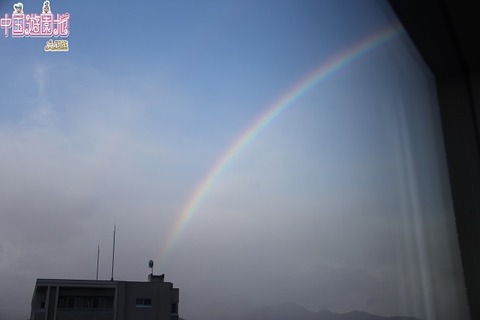旅行支援でかなり安く滞在しているプリンスホテルの窓から虹を見た。