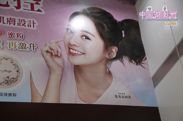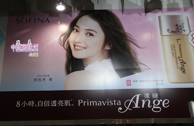 高雄の左営駅で見かけた化粧品の看板には佐々木 希(台湾では佐佐木 希と表記)さん。
