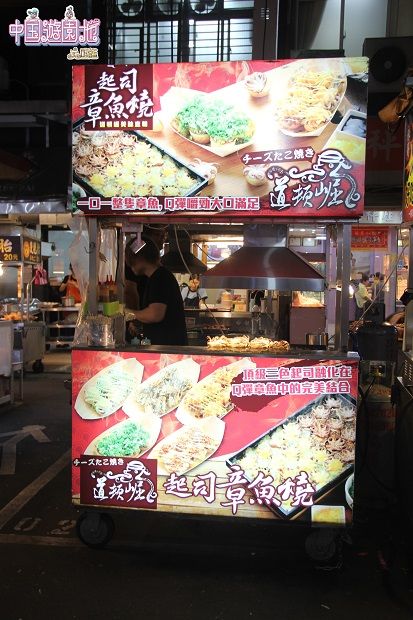 台北の士林夜市で発見したたこ焼きの屋台の看板はだいたいこんな感じ。