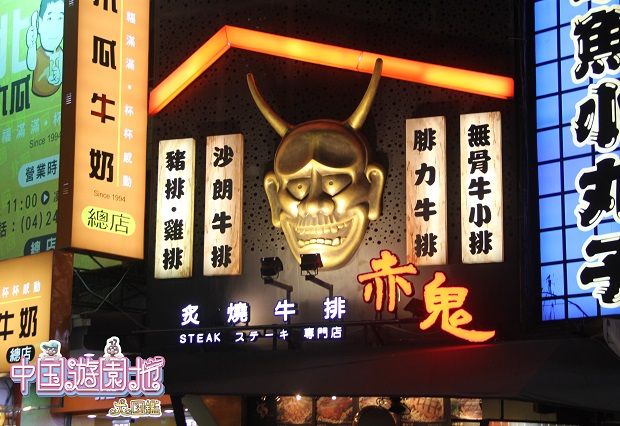 そして台中の逢甲夜市で見かけたお店の屋号が「赤鬼」だった。