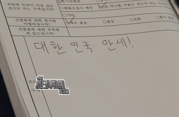 「大韓民国万歳!」と書かれていると教えていただきました。