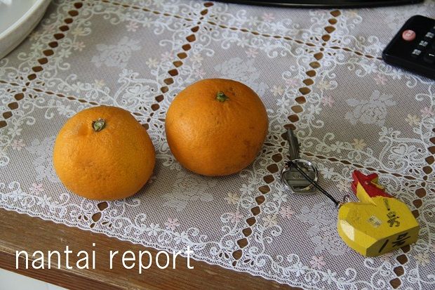 宿のスタッフから頂いた特産品のミカン。