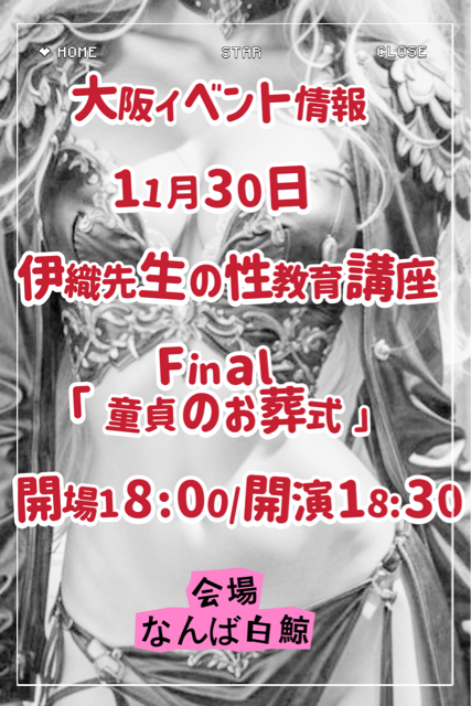 大阪11/30夜の部 伊織先生の性教育講座「童貞のお葬式」